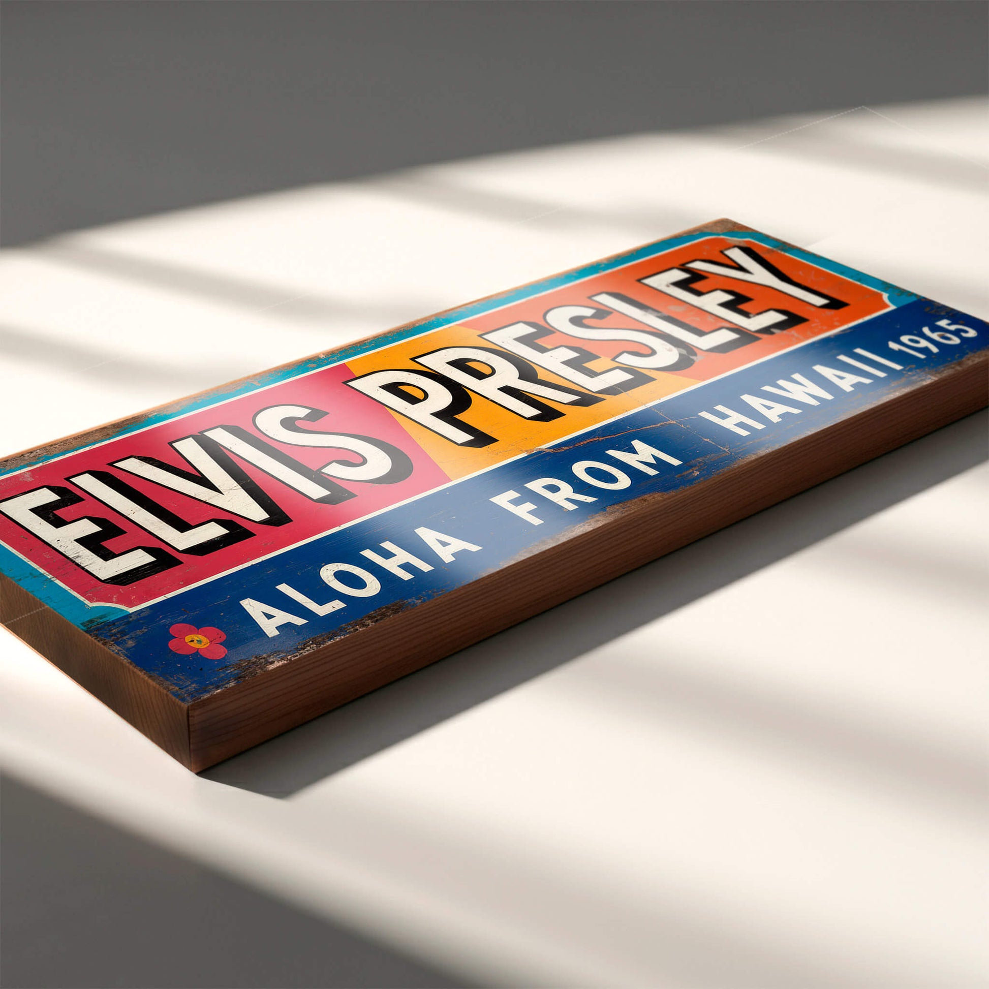 Designed with bold retro colours, distressed detailing, and a nostalgic look, this plaque is ideal for Elvis fans, collectors, or anyone who loves retro music décor.